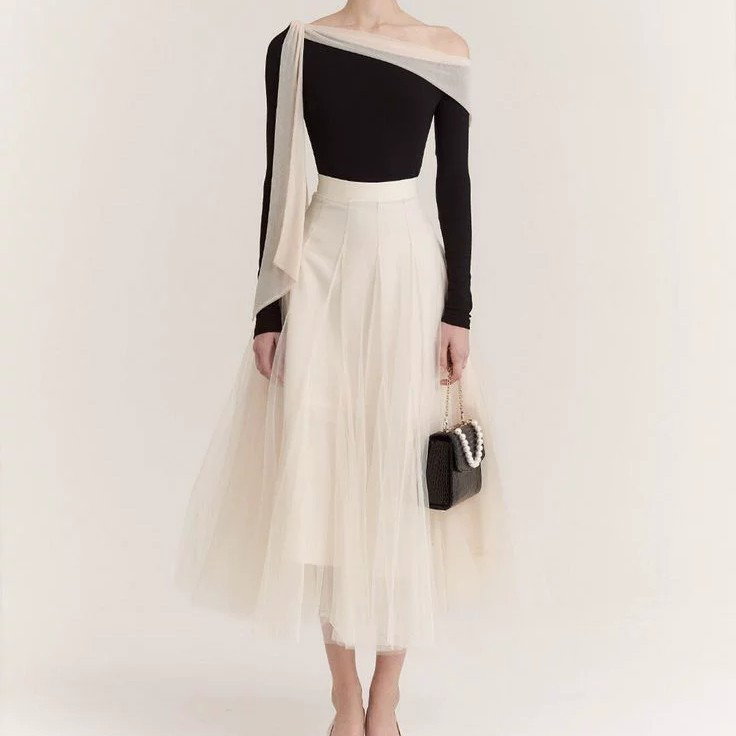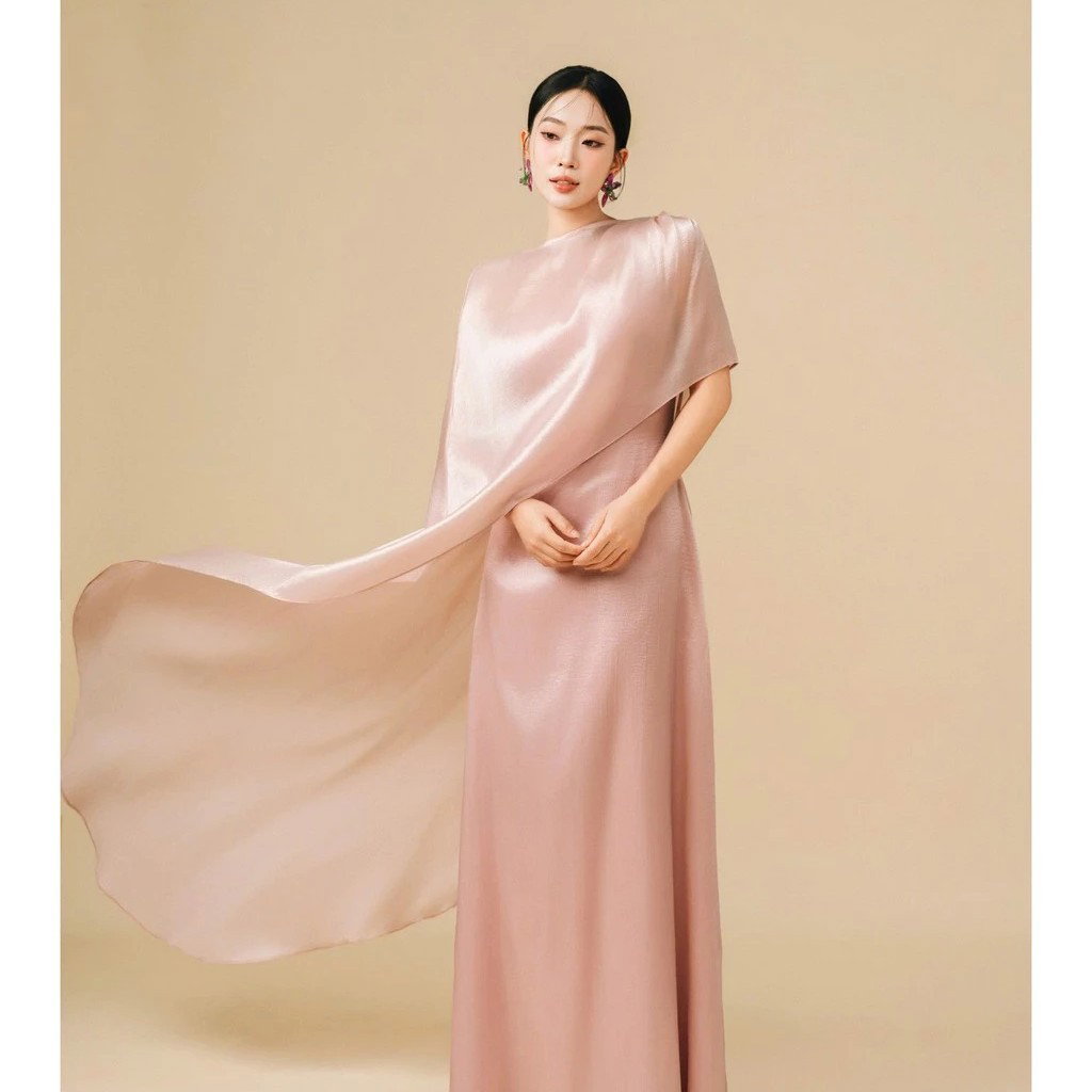 Robe de Soirée 'Le Palais-Royal' – Váy Lụa Satin Choàng Vai Quý Tộc