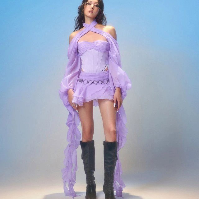 Robe à Volants 'Fleur de Paris' - Váy Tầng Lavender Lãng Mạn